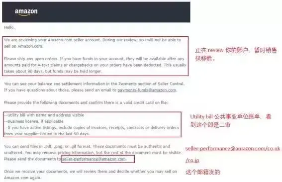 首先,“二审”并非所有卖家都要经历的,只有一部分卖家朋友会收到这样的邮件。当卖家收到账户被停用的提示,需要提交“水电煤网”账单时,这就是遇到“二审”了。